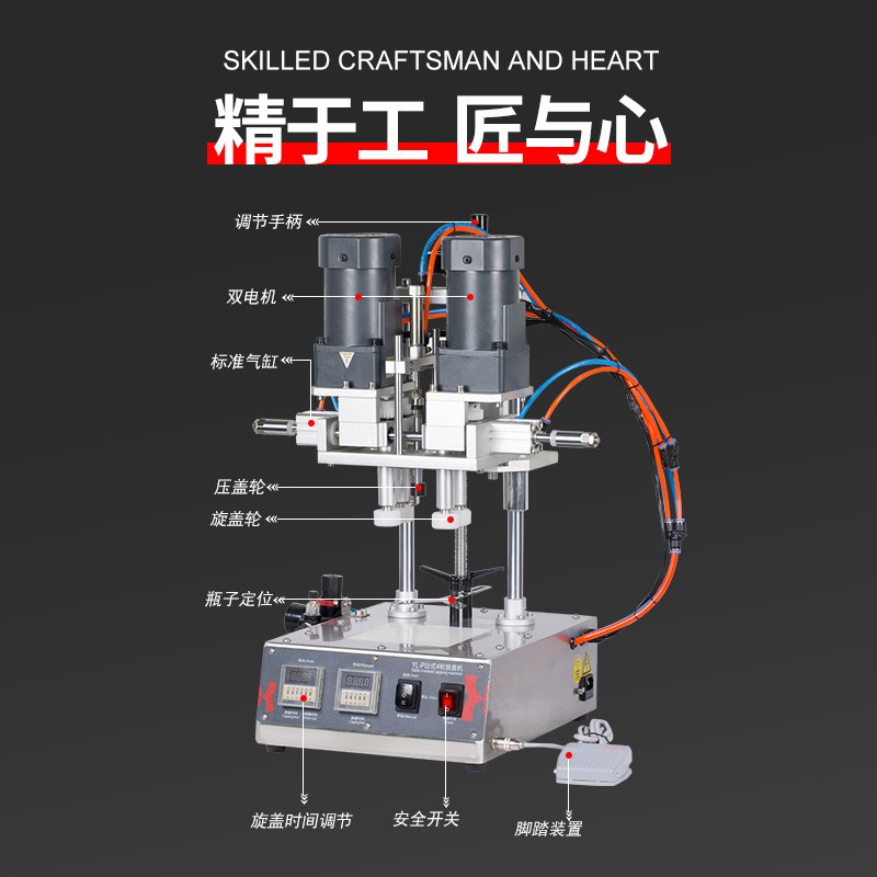 半自動(dòng)瓶子旋蓋機(jī)是一種用于將瓶蓋(塑料蓋、金屬蓋、鋁蓋等)旋緊到瓶口的包裝設(shè)備。它結(jié)合了人工輔助上蓋和自動(dòng)旋蓋功能,適用于中小型生產(chǎn)線、實(shí)驗(yàn)室或小批量生產(chǎn)場(chǎng)景。
